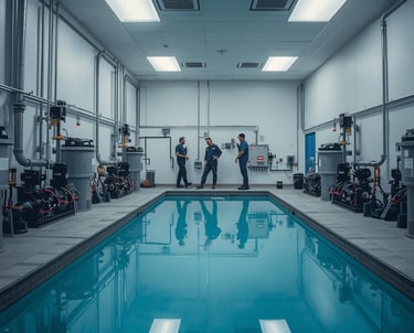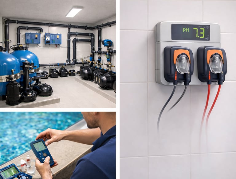 Supervisión y regulación de equipos automáticos de dosificación para garantizar una desinfección constante y equilibrada sin exceso de productos químicos.